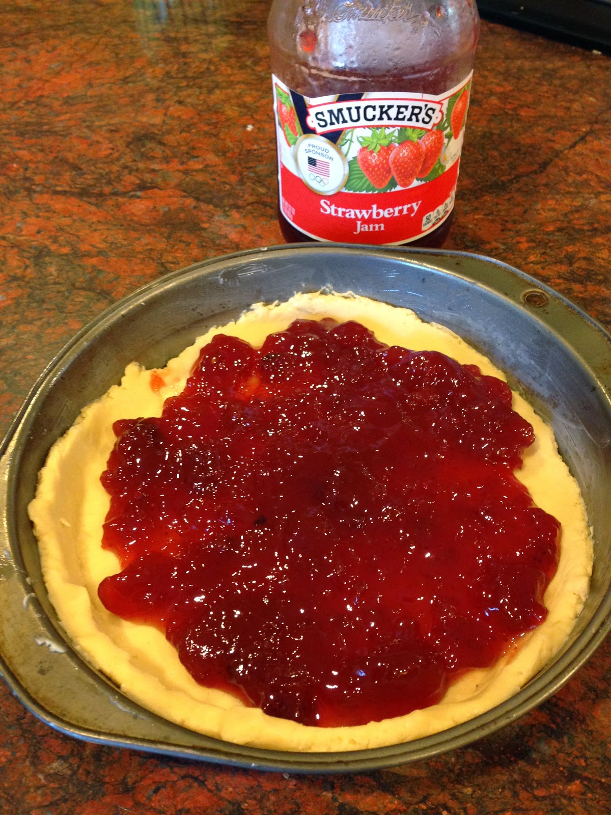 I was worried that I did not fit the dough in correctly and I put my jam closer to the edge than the recipe called for but it all worked out. This cake is quite forgiving.
