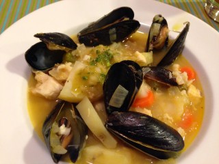 We made a healthy start to the New Year with Simplest Breton Fish Soup (page 96) for French Fridays with Dorie. Almost everything about this soup was new to me. I haven’t made a fish soup before and never eaten mussels. I made a half recipe which made a lot of soup. I was worried about using fish broth as I thought it would be too fishy so I used vegetable broth which worked well for us. I bought tilapia since I like that fish which tasted good but broke up a bit with mixing. I have never had mussels before and I didn’t like the looks of them, digging them out or the taste. My husband enjoyed them and thought we cooked them perfect. I followed the Bonne Idee and added carrots to the soup for added vegetables. My husband also thought that the soup tasted better the next day. I am glad that I tried something new but will probably not be making this one again. Happy New Year!