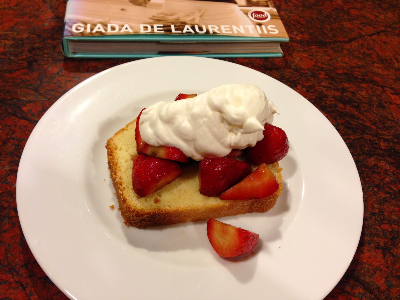 I have had my eye on a new cooking group for a while, I heart cooking clubs (IHCC). This group features 12 chefs. Two of the chefs that I have cookbooks for are Giada de Laurentiis and Yotam Ottolenghi. I thought I would jump in this month with their current cooking challenge, Mystery Box Madness Challenge. For this challenge I selected Marinated Strawberries over Pound Cake by Giada de Laurentiis using the mystery box ingredients of strawberries, vinegar and vanilla.