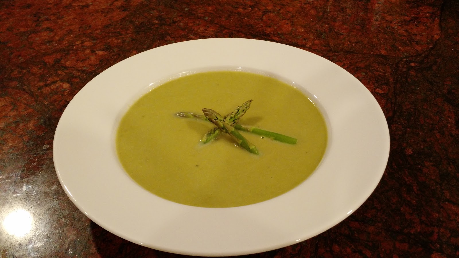 Here is what I did. Put olive oil and butter in a pan. Add leeks, onion, shallot, garlic and cook for 5 minutes. Add asparagus and cook for another 5 minutes. Add chicken broth, bring to a boil and simmer for 30 minutes. Puree soup in blender and serve.