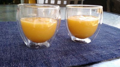 Looks like it was Mango-Pineapple Smoothie for the win this week! 😉 (Love those double-walled glasses too!)