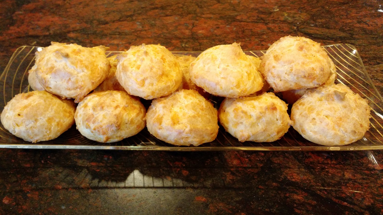 From Around My French Table by Dorie Greenspan, Gougeres. Dorie describes these as cheese puffs. Made from pate a choux dough they are light and airy. Traditionally they are made with Gruyere, Comte or Emmenthal but I made these with cheddar.