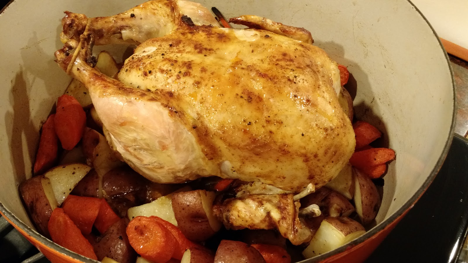 Continuing on my journey to complete the recipes from Around My French Table. I have completed almost all of the chicken section. This was my last remaining roasted chicken. I knew we would love it as we have enjoyed all the others in the book. Dorie provided several bonne idee and we included several including these potatoes and carrots. It was a one pot meal and delicious. Another one to add to the rotation.