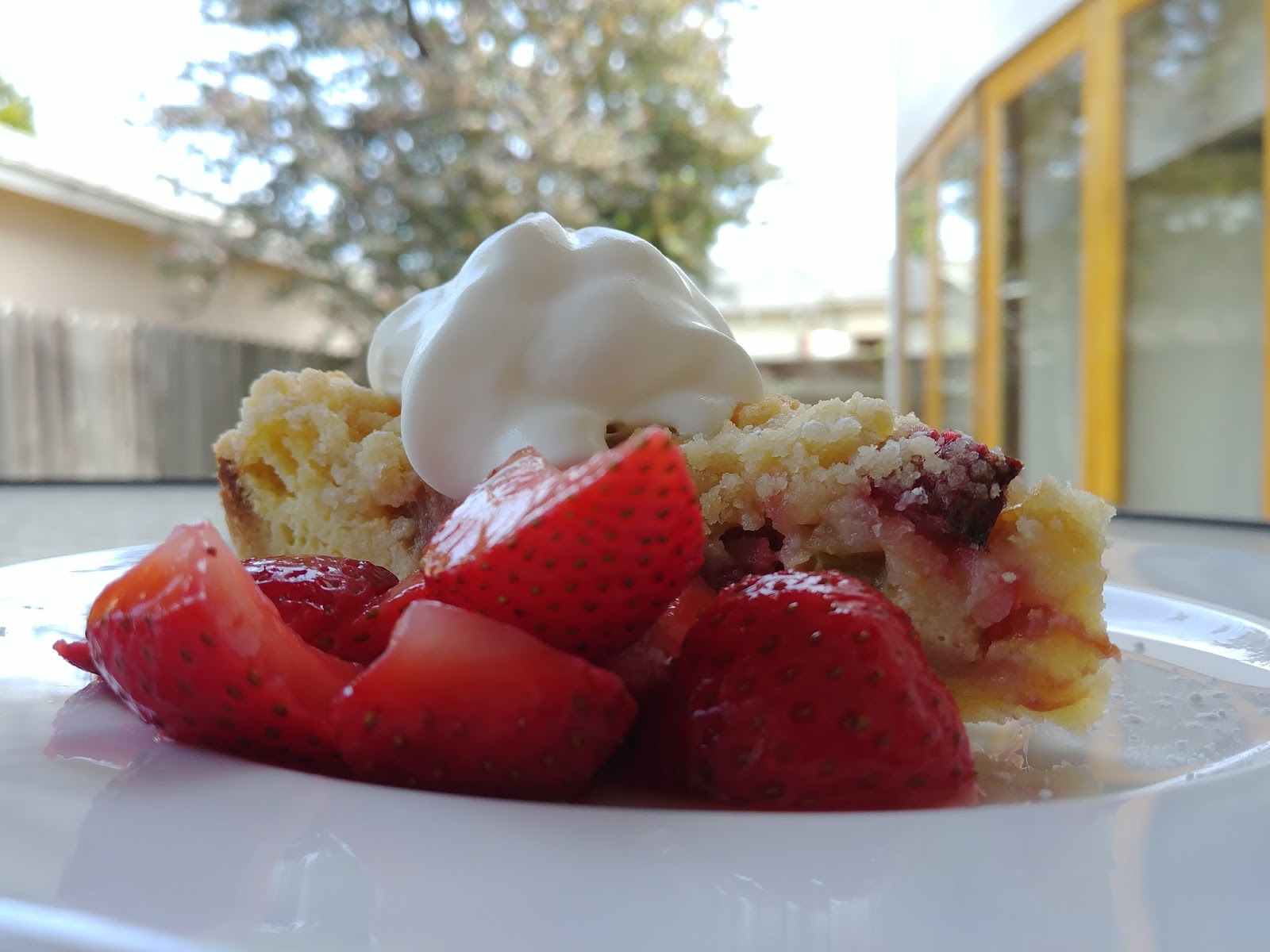 I voted for this tart as we loved Dorie’s rhubarb cake we made two years ago. Dorie’s crust and streusal topping are really the star of this dish. My husband likes to joke that you could put cardboard between the two and it would taste good. This was a different kind of tart as it had a custard filling. Everyone liked it and thought it was good, some even had two pieces. I served mine with sugared strawberries which everyone liked. The consensus was that we preferred Dorie’s Rhubarb Upside-Down Brown Sugar Cake over this tart. What did you think?