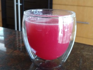 I also managed to make pomegranate sunrise fizz (page 83 from My Kitchen Year). “Cut a pomegranate in half and squeeze it as if it were an orange. On its own, the color is extraordinary-like liquid garnets-but if you combine it with the juice of an orange, you end up with the color of a sunrise. Pour over ice and splash in a bit of soda water”.