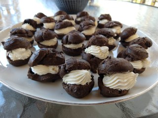 For this recipe I managed to get 23 cream puffs using a two teaspoon scoop. I think this worked in my favor as I was serving these for a crowd. I feared I would not have enough filling but I had exactly what I needed. I used dark chocolate cocoa powder for a rich flavor. My guests commented that they were as “light as air” which I took as a compliment. These were the perfect bite-size dessert. To see what others thought head over to Tuesdays with Dorie.