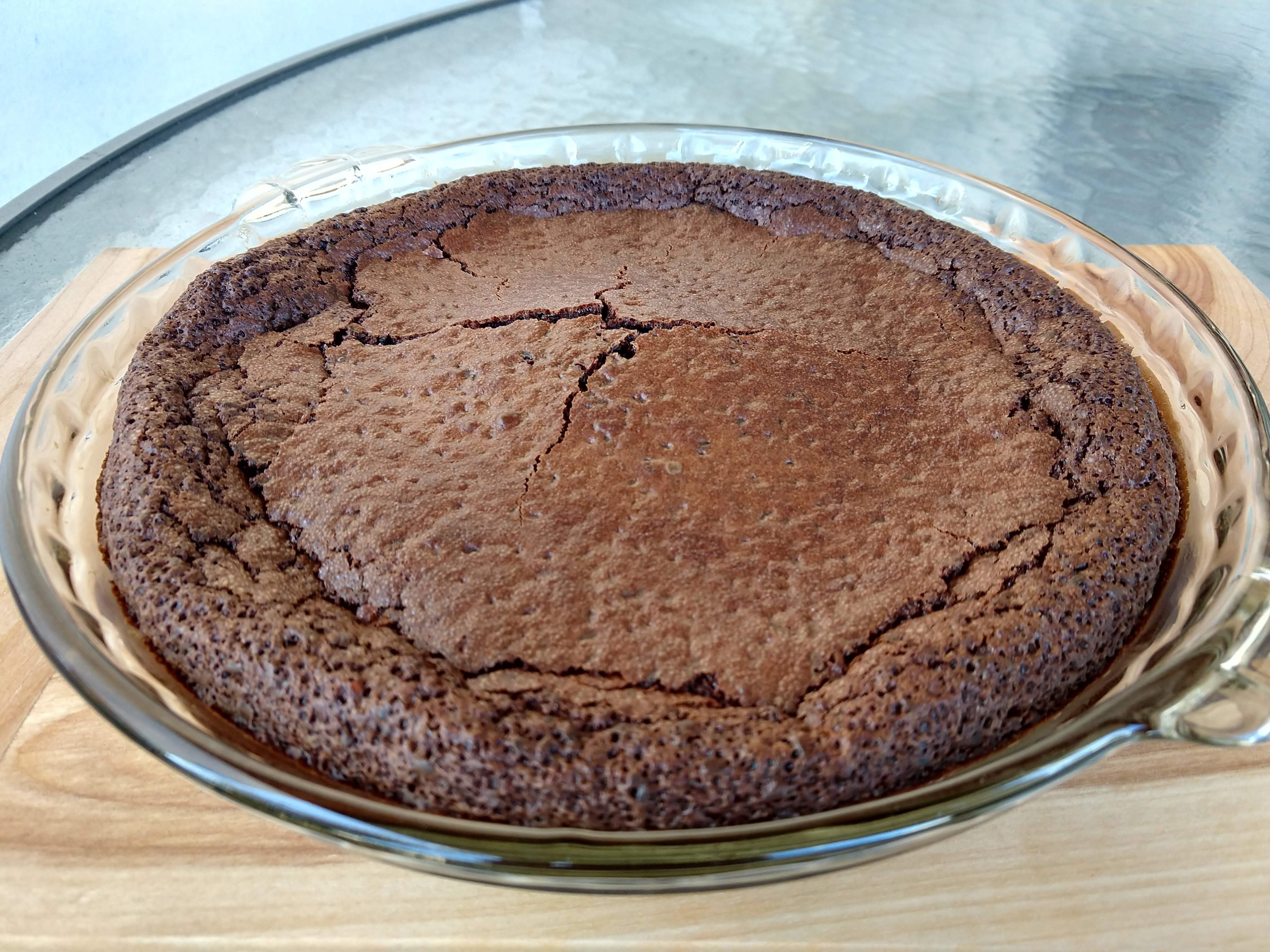 When I told my husband what our next baking assignment for Tuesdays with Dorie he said, “I don’t think I can eat a cake made in a pie plate”. He was kidding of course. It is a chocolate month for us and this one more chocolaty than the last. This is a flourless chocolate cake made with butter, bittersweet chocolate, eggs and brown sugar. It is thickened with either a tablespoon of flour or two teaspoons of cornstarch. The crunch comes from your choice of black sesame seeds, poppy seeds or cocoa nibs; I went with back sesame seeds. My cake served at room temperature was pudding-like in the center. I ‘made’ my family eat the first piece of cake with whipped cream but I know that they will prefer vanilla ice cream for the rest.