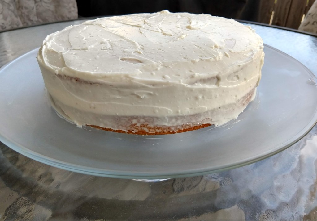 In the spirit of COVID-19 baking, I am using up what ingredients I have on hand. I noticed an almost full bag of semolina flour, bought for Moroccan Semolina and Almond Cookies , and wondered what I could bake with it. I came across this recipe for a semolina cake and I was intrigued. I like orange, almond, cream cheese and Greek yogurt so I thought this a good choice for my birthday cake. I made one deviation from the recipe, I rubbed the orange zest into the sugar before adding the eggs, I think this makes for more orange flavor and I used the zest of one whole orange. I used 9-inch cake pans as that is what I had and baked them for 25 minutes which seemed perfect.