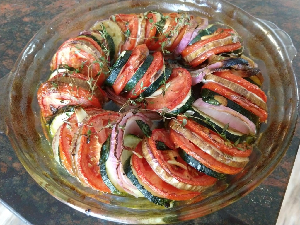 3. Your veggies are cut evenly. My mistake was not getting the veggies of the similar sizes. Surprised that Dorie didn’t highlight that important point in the recipe. Haven’t seen graffati eggplant yet since I haven’t been shopping!