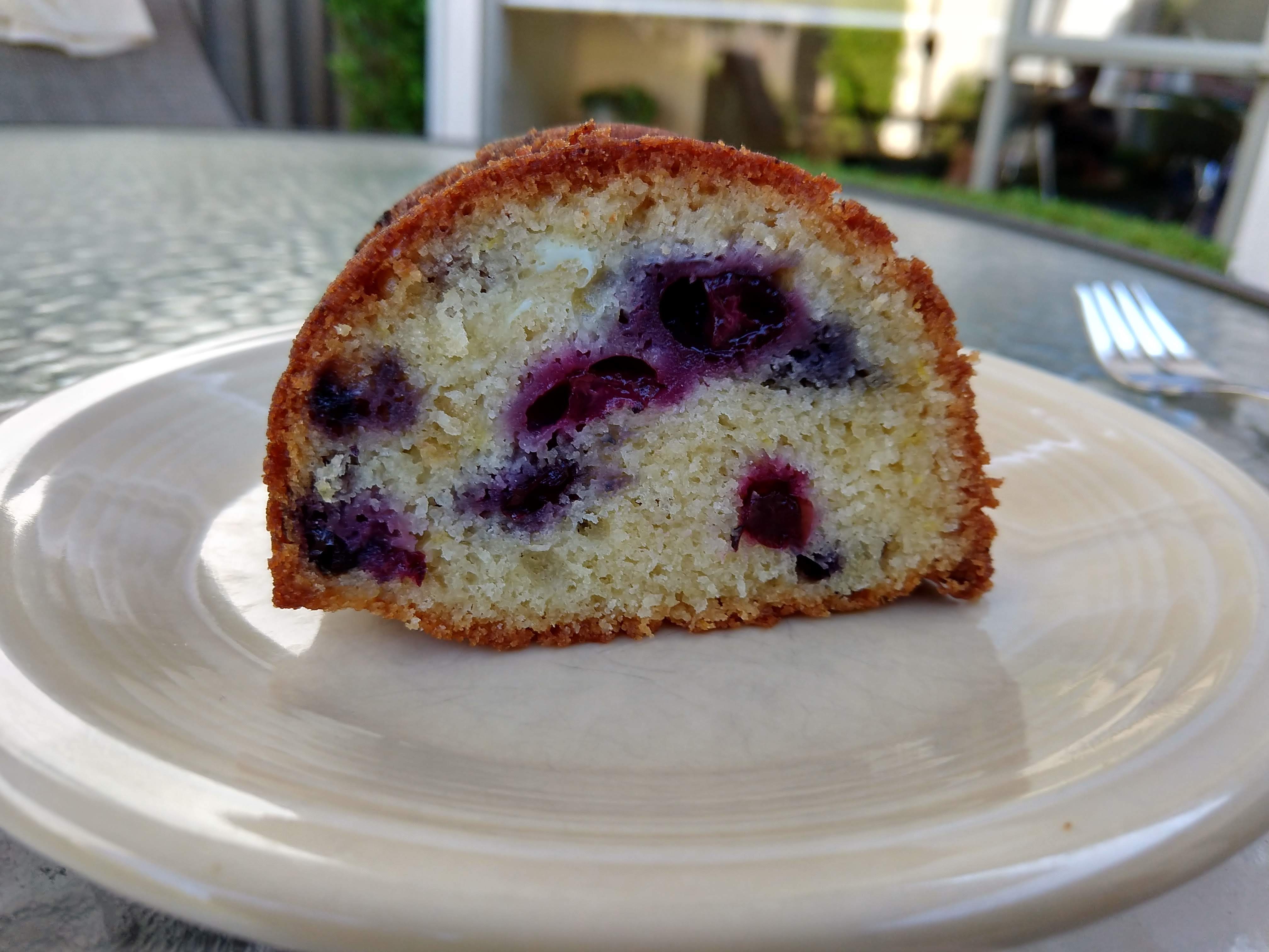 In season or not, a box of blueberries is always on hand. This is a great cake to make, especially when the blueberries are sweet and juicy. Your close-up shot looks incredible.