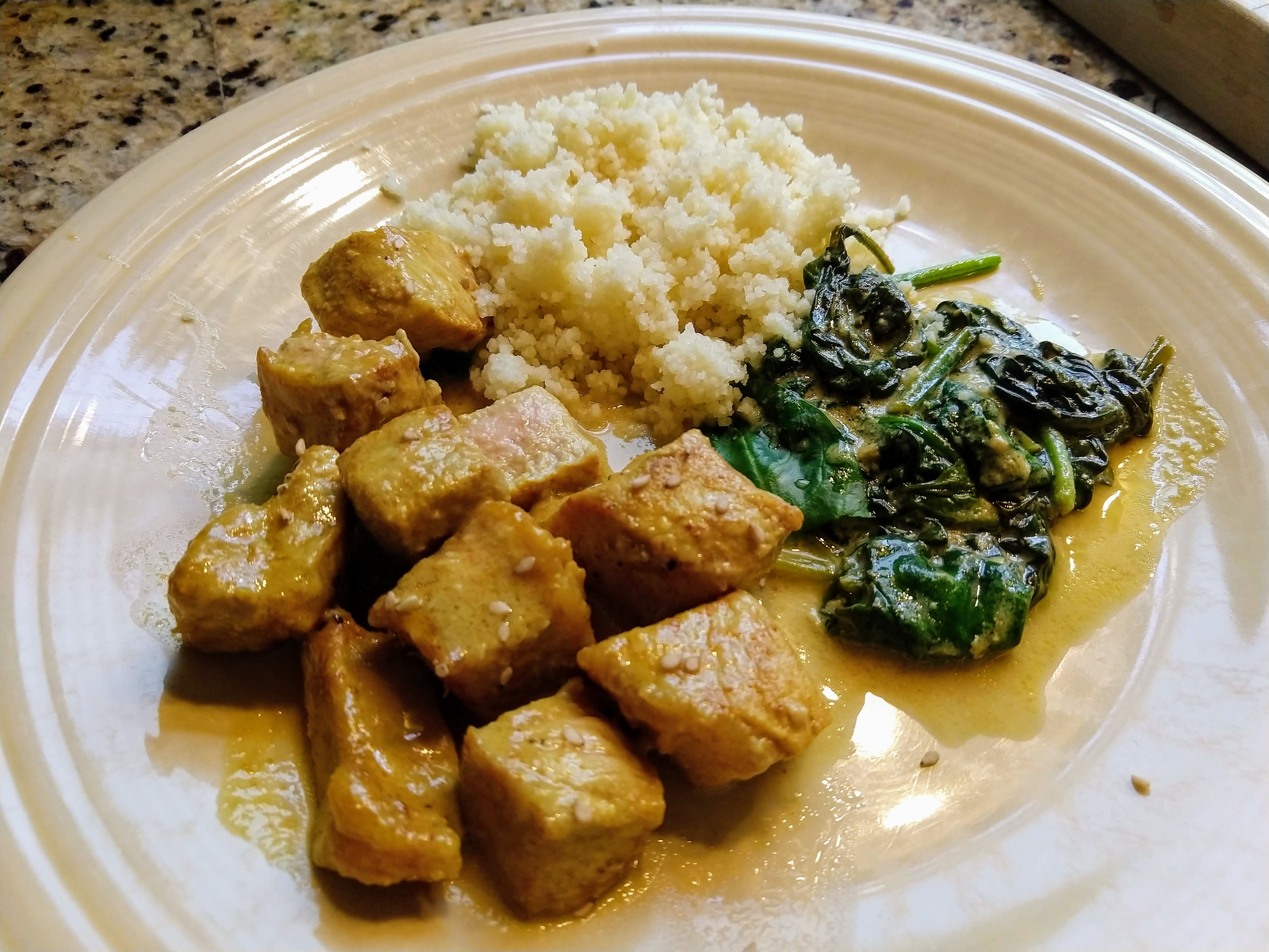 I have also made lightning-fast tahini pork which was a big hit with the family. I served it with couscous and Dorie’s suggested spinach. We will make this one again.