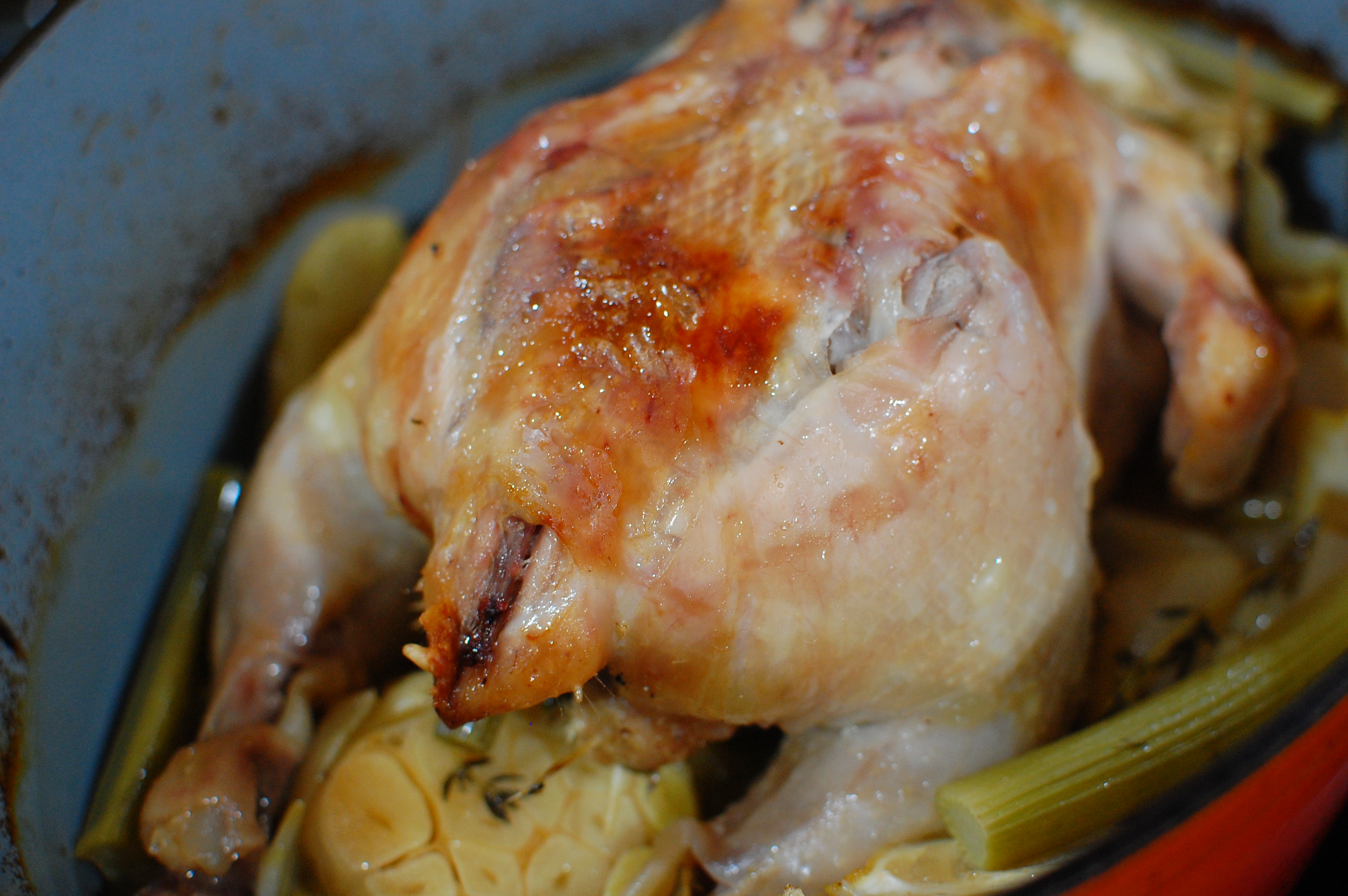 I put my husband in charge of this one, he is good at savory cooking. We purchased a whole chicken from Trader Joe’s and it was a little less than 4 pounds. My husband was concerned about the 450 degree heat for 90 minutes and he was right. He decreased the cooking time due to the decreased weight but the chicken was still over cooked. The breast meat came out very chewy almost stringy, maybe it was a bad chicken?