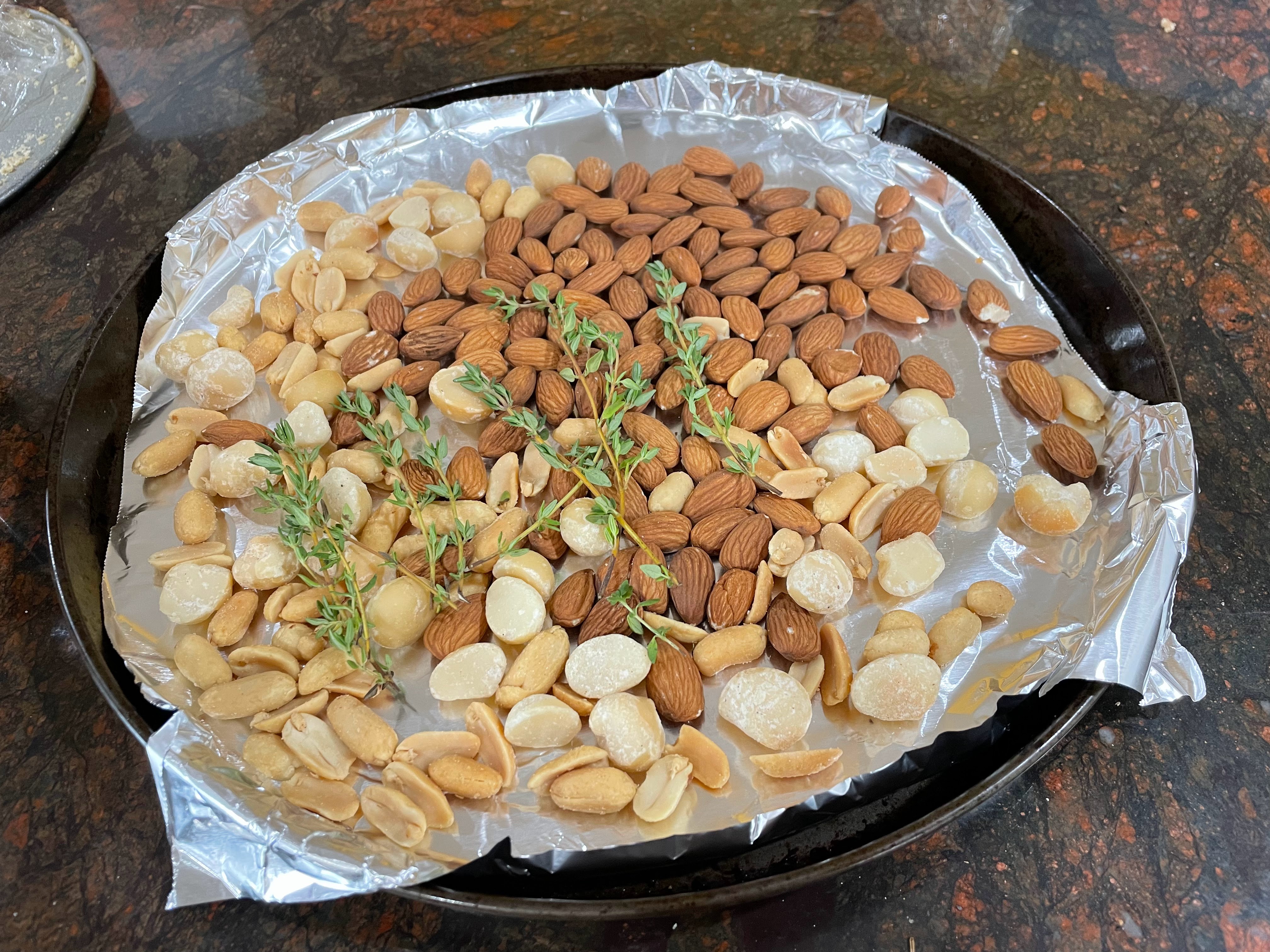 This was an easy recipe with minimal prep and baking. My husband started snacking on the nuts as soon as they came out of the oven. The smokiness of the paprika and the thyme kept the nuts from being overly sweet. These nuts definitely need to be kept in a container or portioned out as I kept going back for one more, one more…