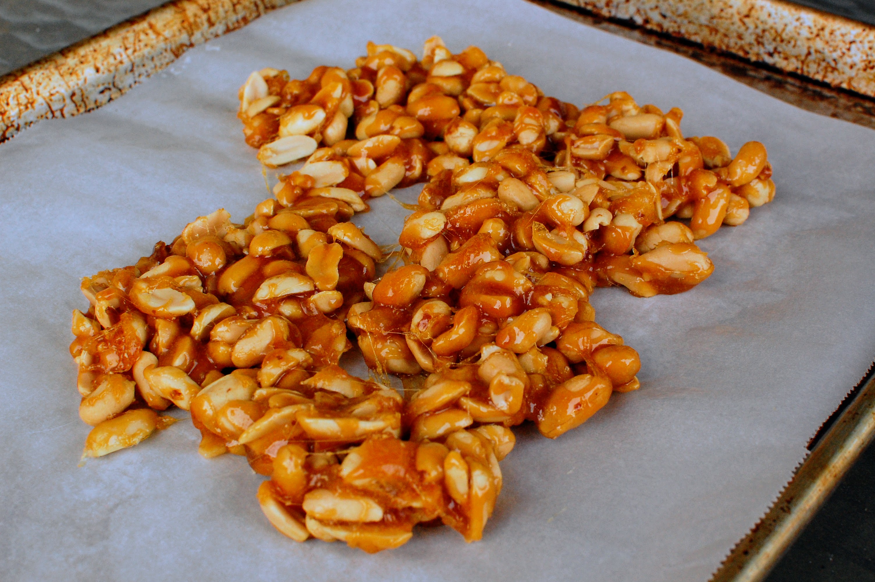 To make the brittle, recipe calls for a nonstick baking sheet or a baking mat neither of which I had. A quick Google search and I found buttered parchment paper worked so that is what I did. Making brittle is pretty straightforward as long as you don’t make a mistake. I have crystalized my sugar in the past but luckily that did not happen this time. Dorie was correct that it is hard to get brittle to spread. Making the sprinkle and spread was easy in the food processor.