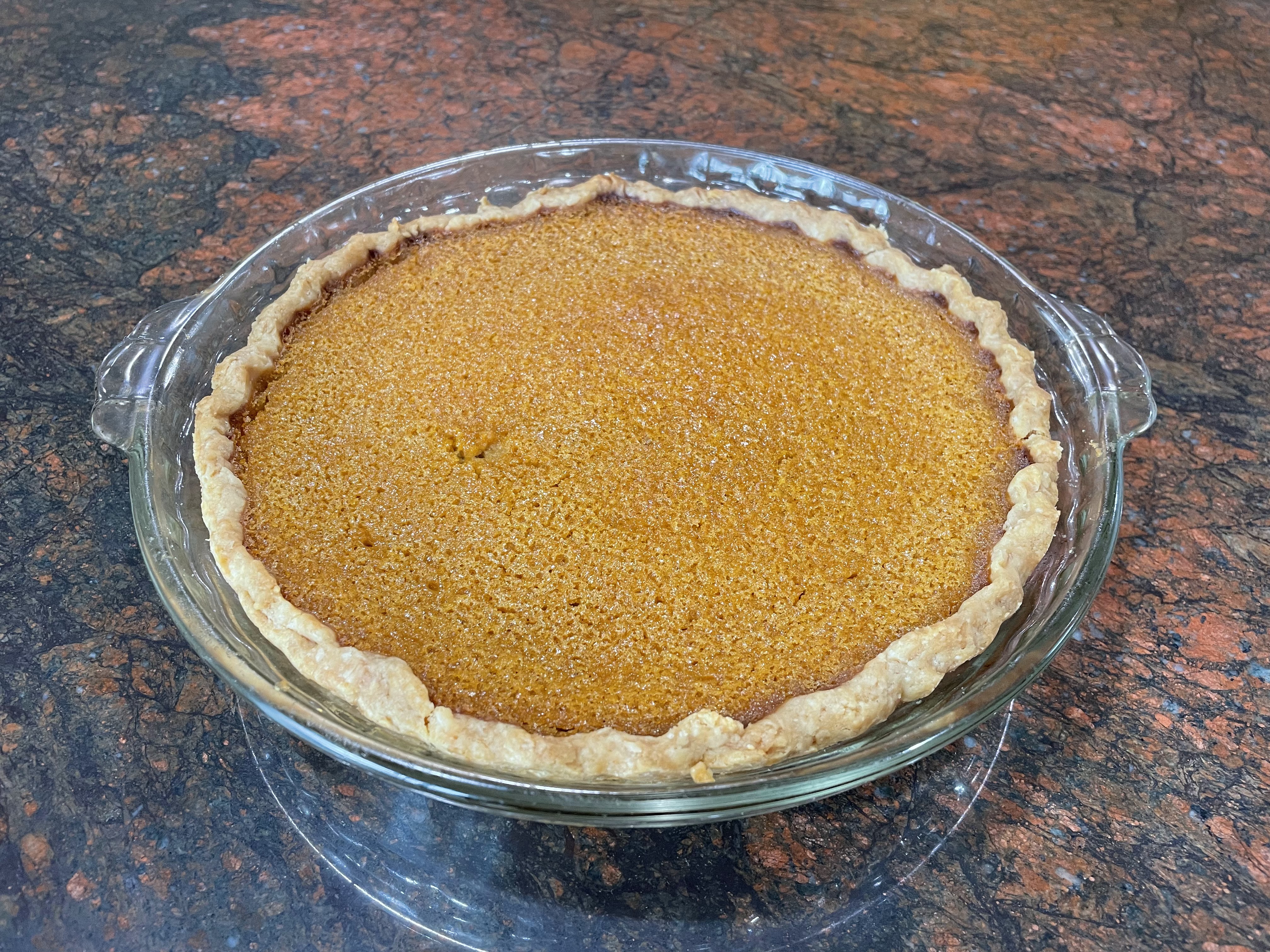I think I over baked my pie but no one complained. It was a rich pie with heavy cream and sour cream. Since I have a few family members that are pumpkin haters I usually make other pies but this pie can make an appearance for other gatherings.