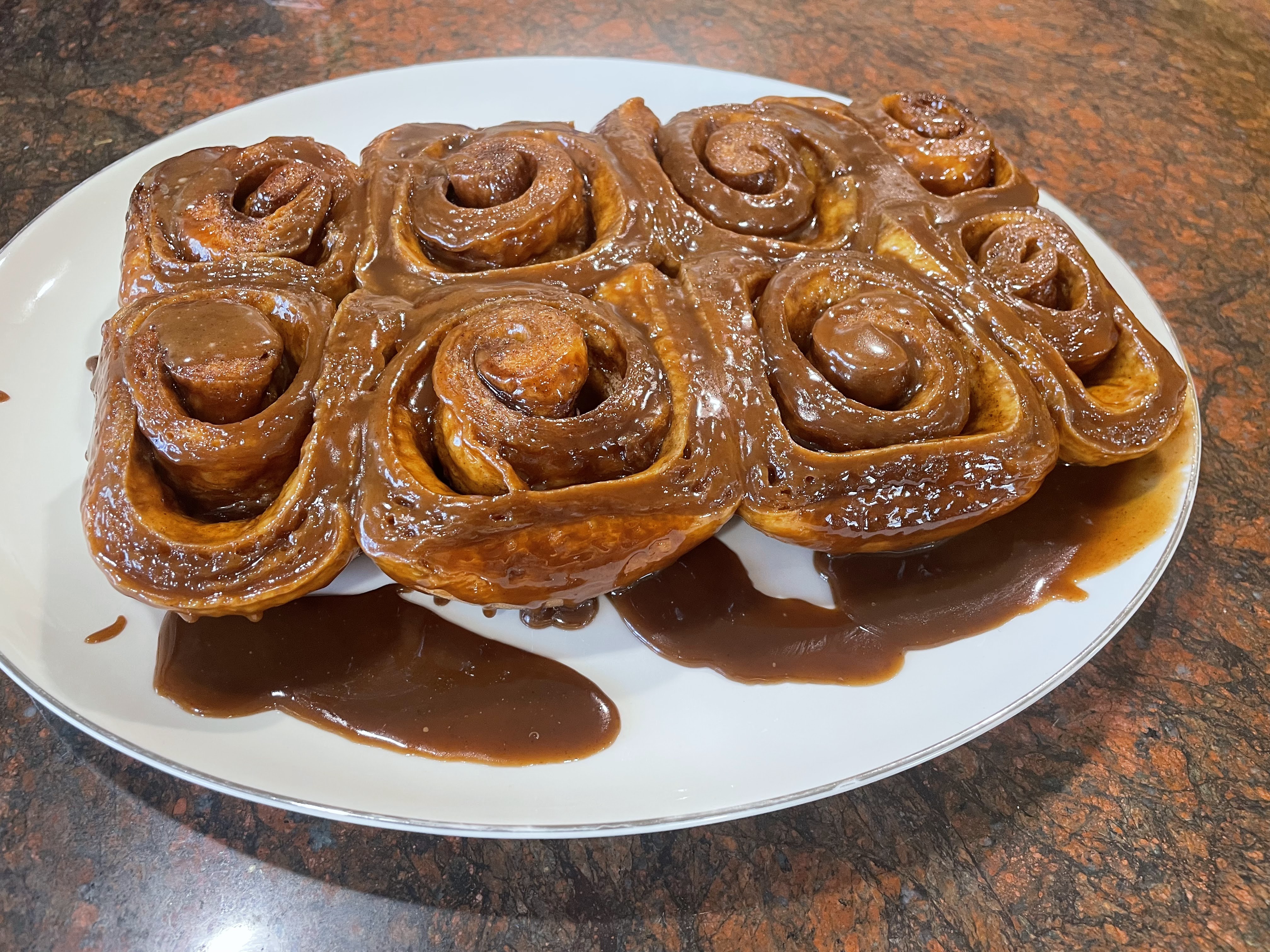 Gorgeous photos of the buns…and thank you for the tips on the two day timing. They look absolutely perfectly delicious…all that caramel sauce! Yum. Sounds like everyone there appreciated and loved the buns, always a good feeling.