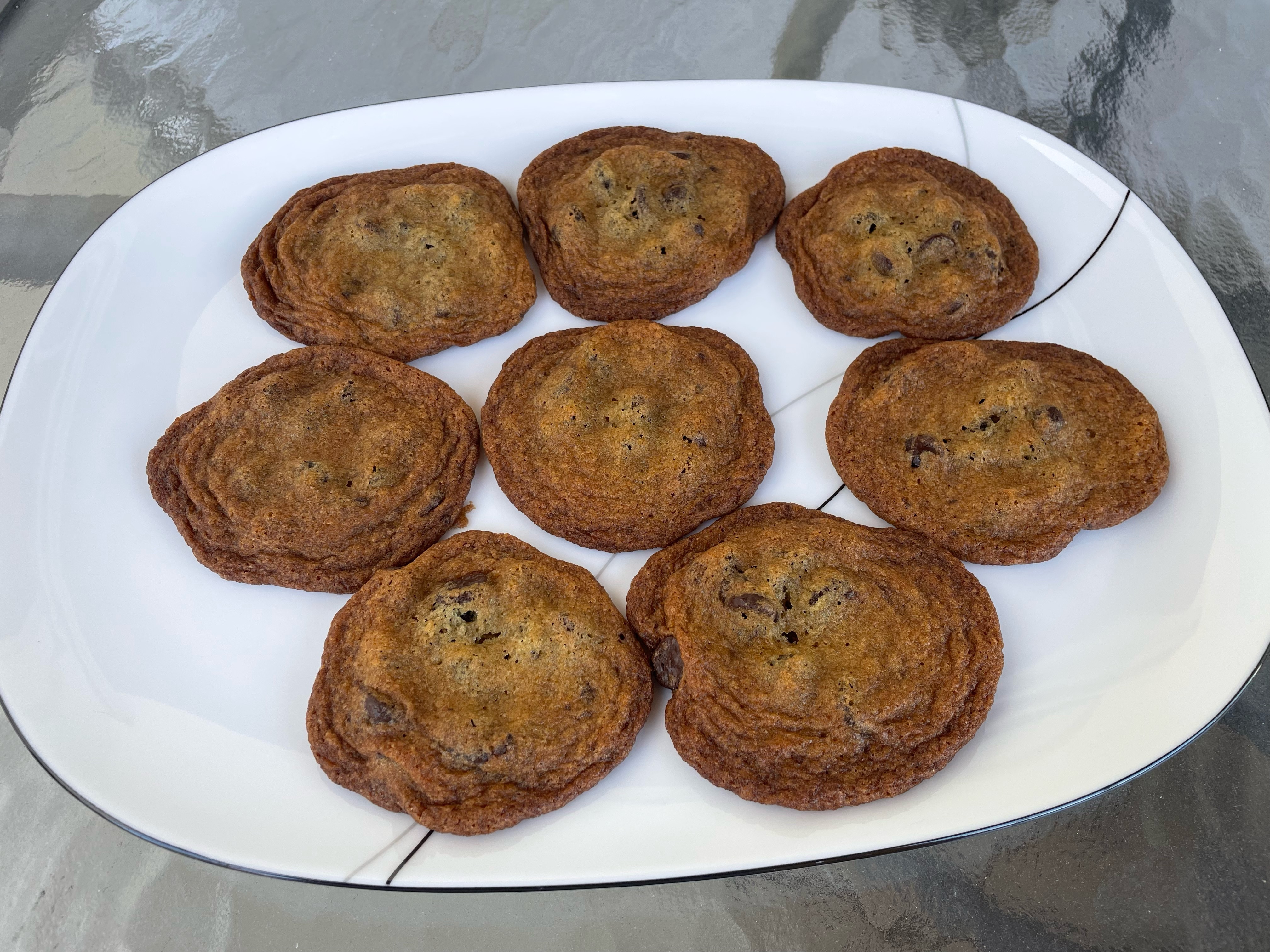 This week on Tuesdays with Dorie we are cooking from Baking with Dorie. This classic chocolate chip cookie was a resounding success. I baked these along with our Banana Cappuccino Cake since I knew some folks do not like coconut and/or coffee flavors. These cookies are on the thin side, have lots of chocolate and great flavor. I think this will be a make again recipe.